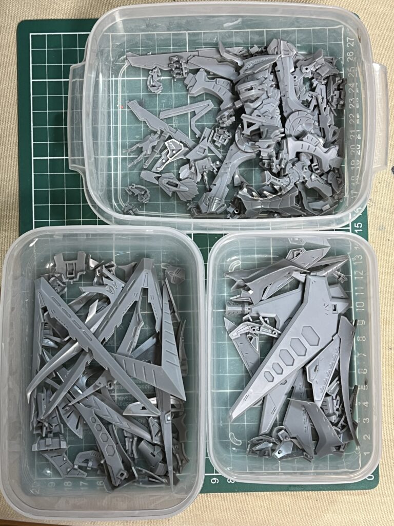 エンゲージと同じようにグレーのパーツ色。これらを説明書の写真見ながら青、白、フレーム用に分けてました。