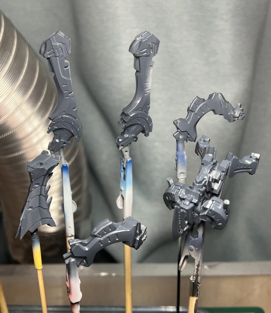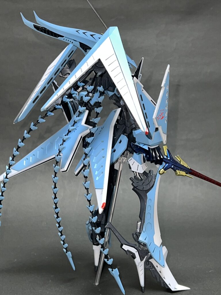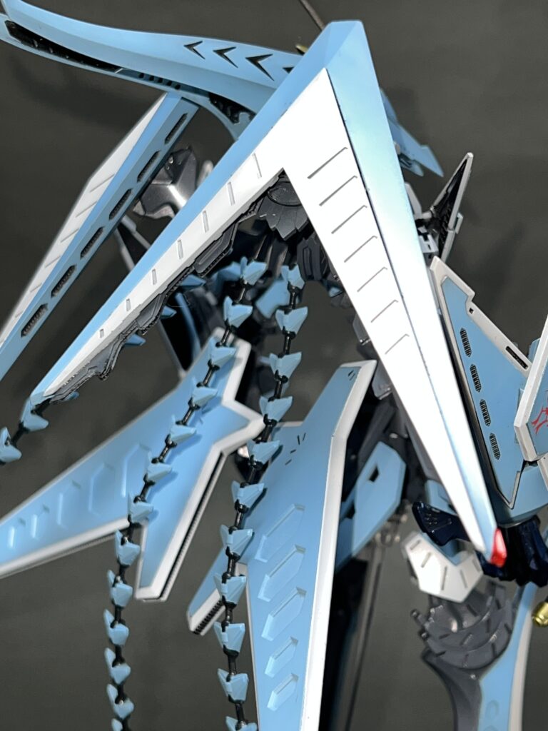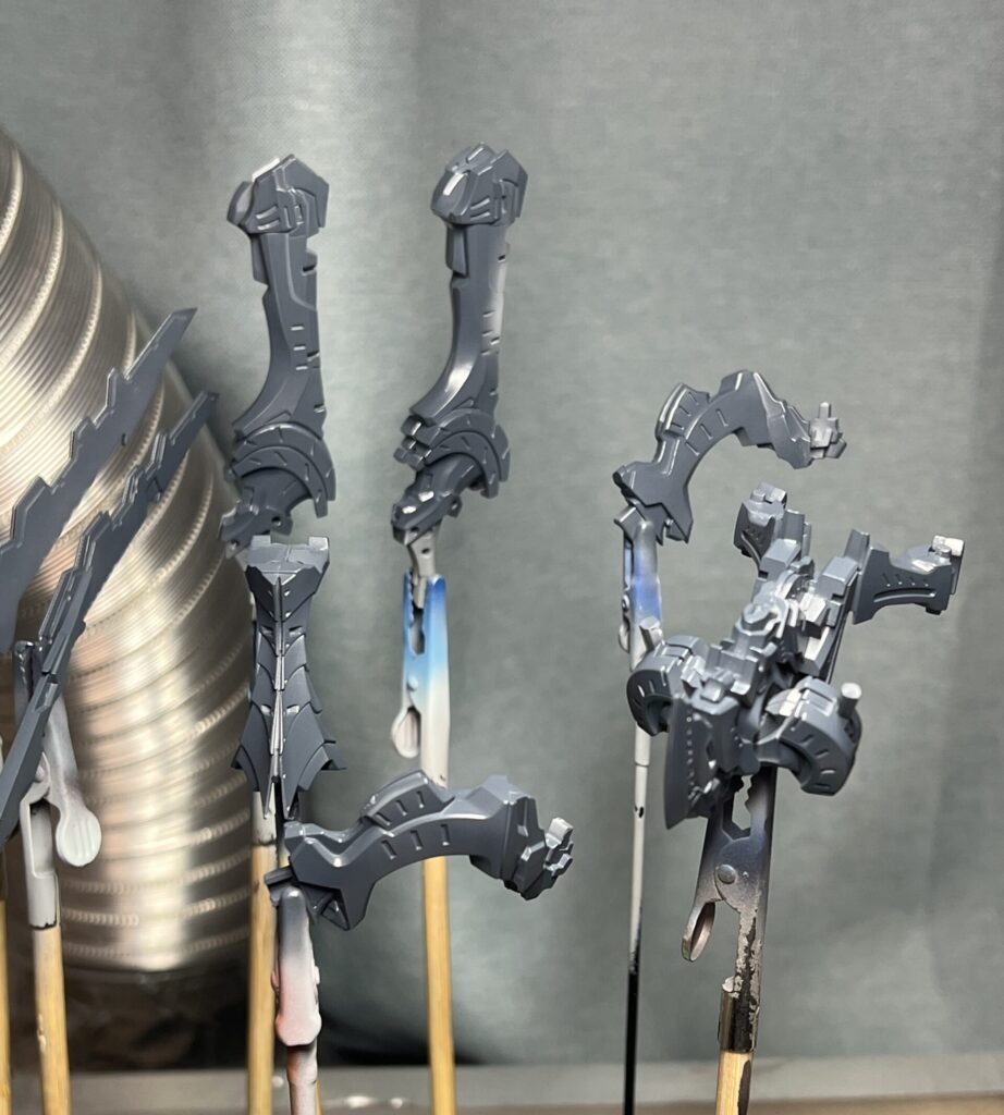 ハンドパーツはフレームに塗った色の上からサファイアブルーを吹き付けています。