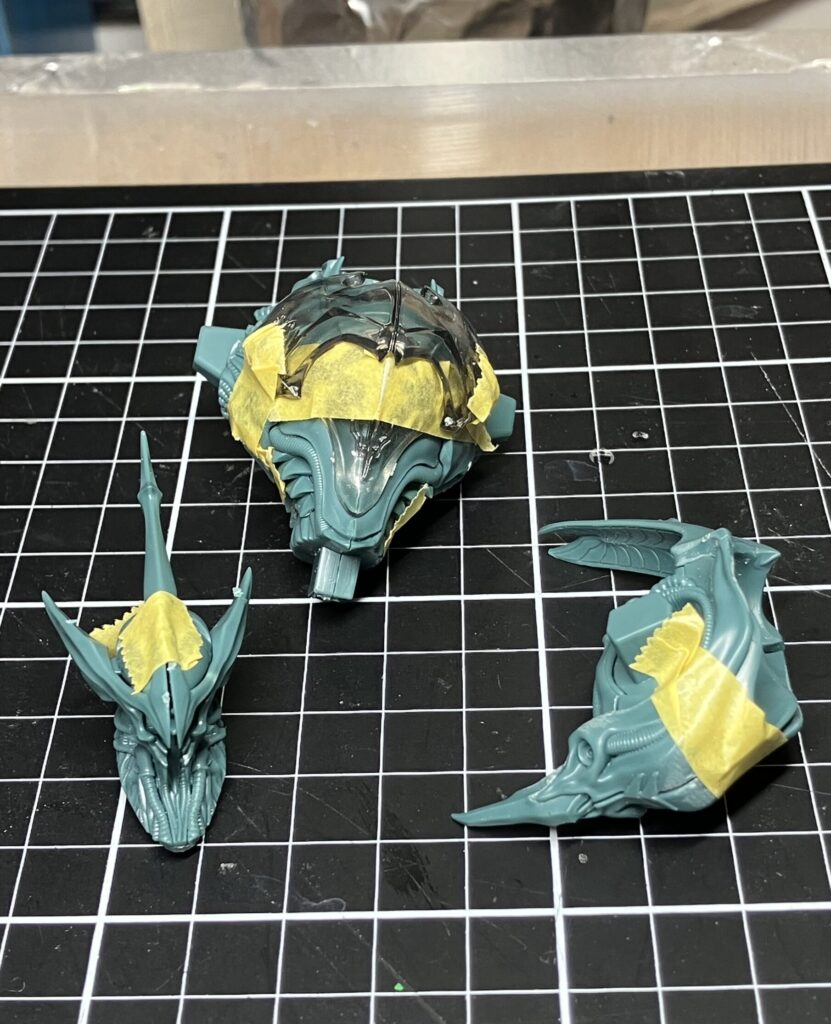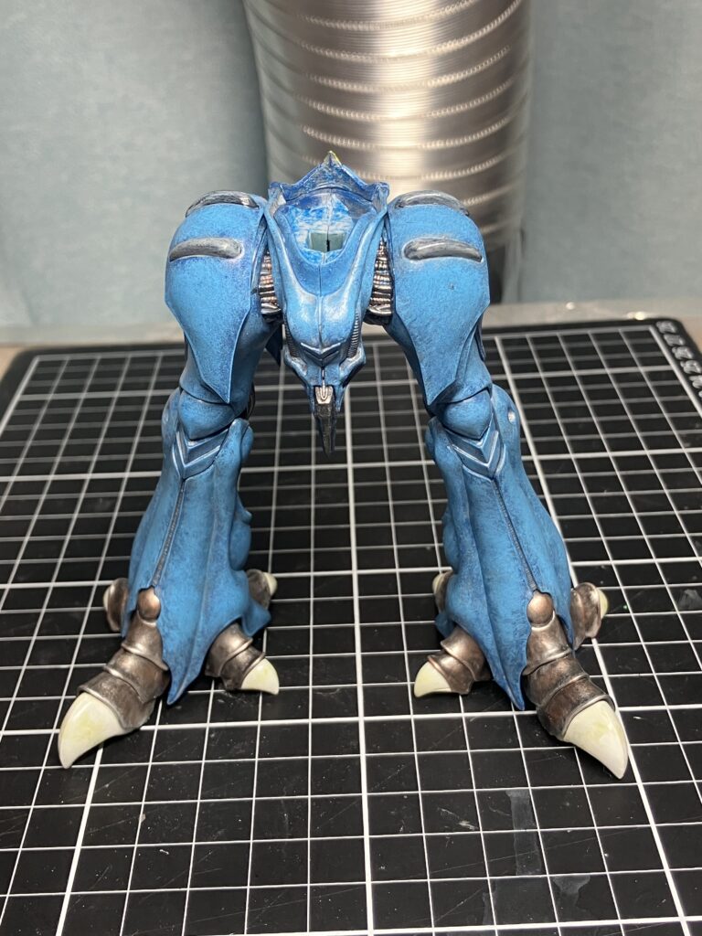 普通のサフの上からブルーを塗り始めたらイマイチだったので、ダークグレーを塗り直しました。