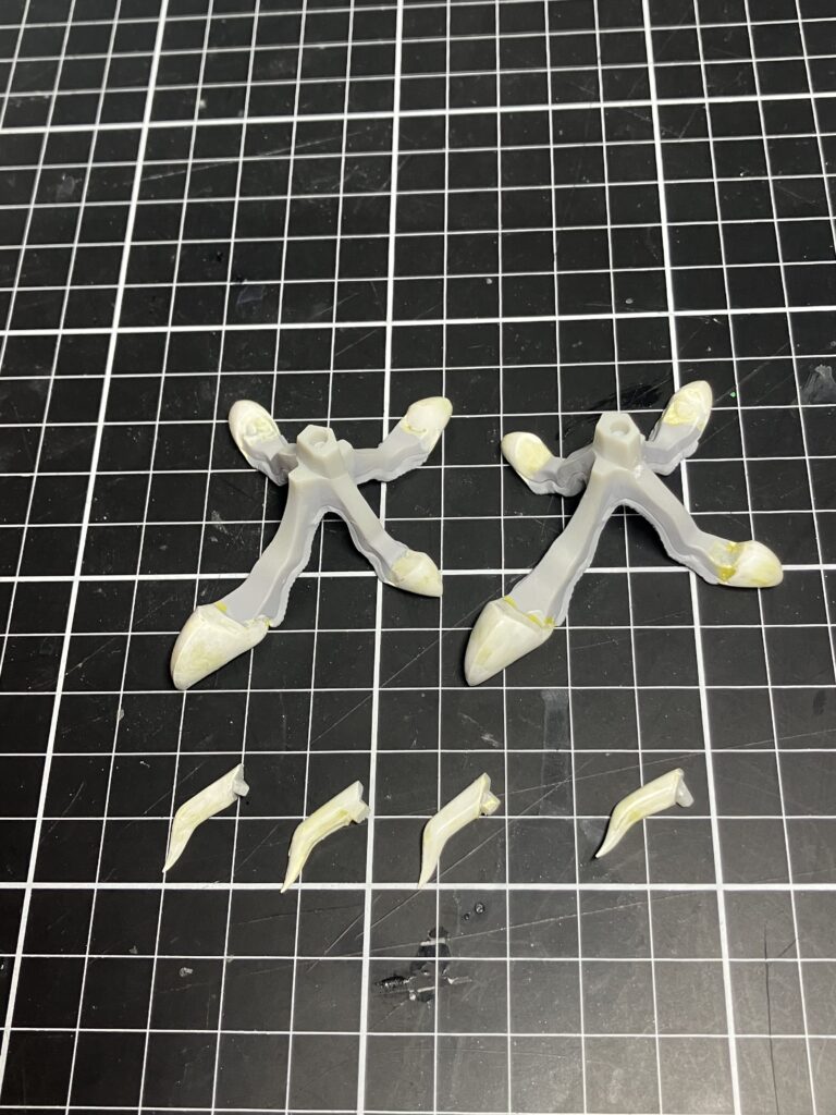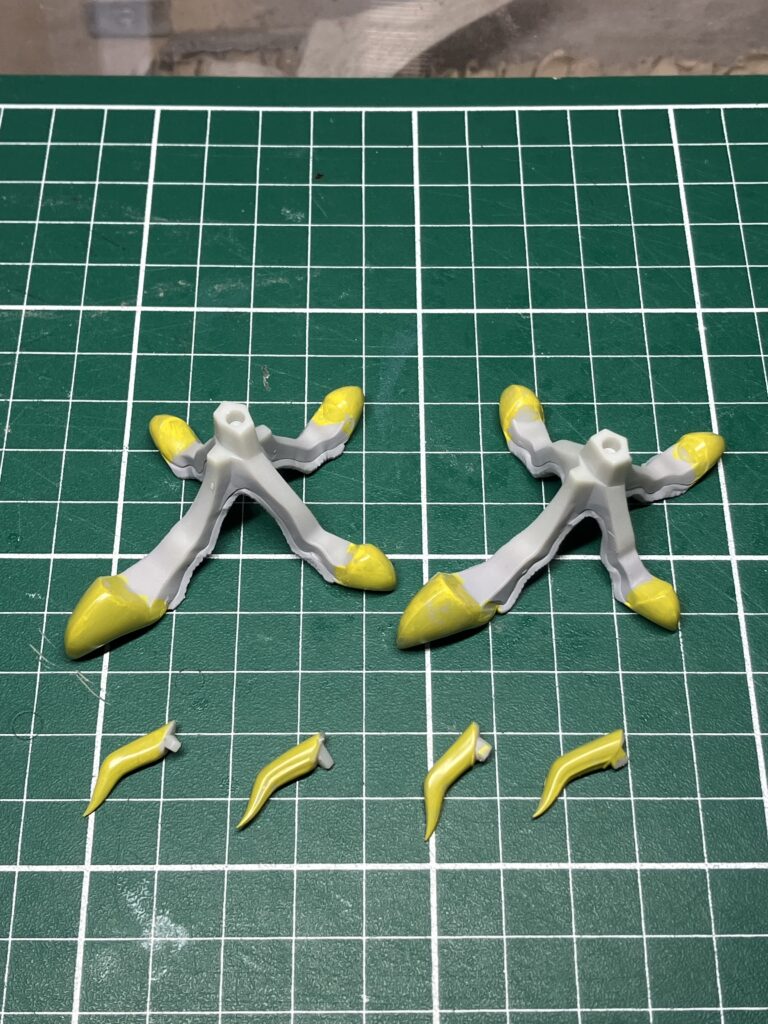 爪はベースにイエロー、その上からホワイトを塗りました。白はイエローが中心に残る様に塗っています。