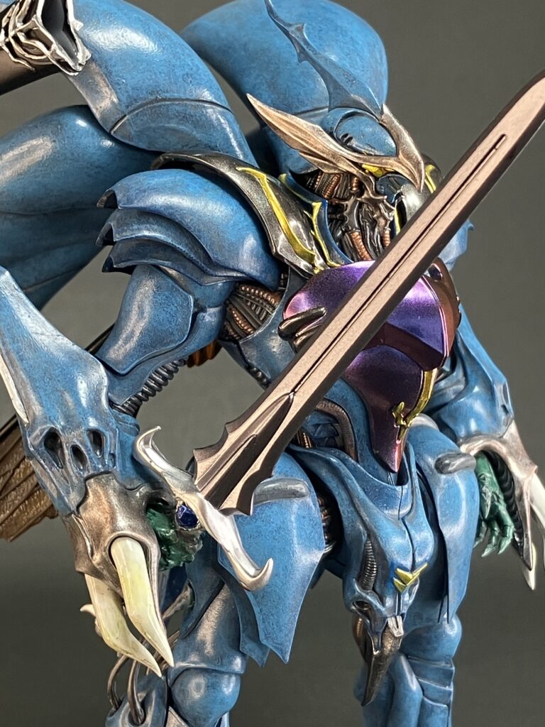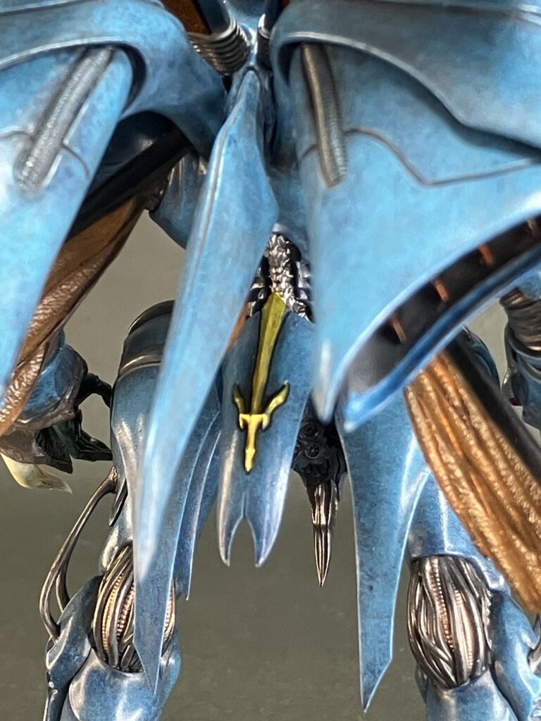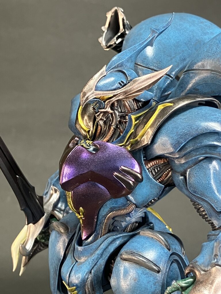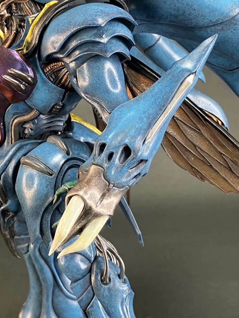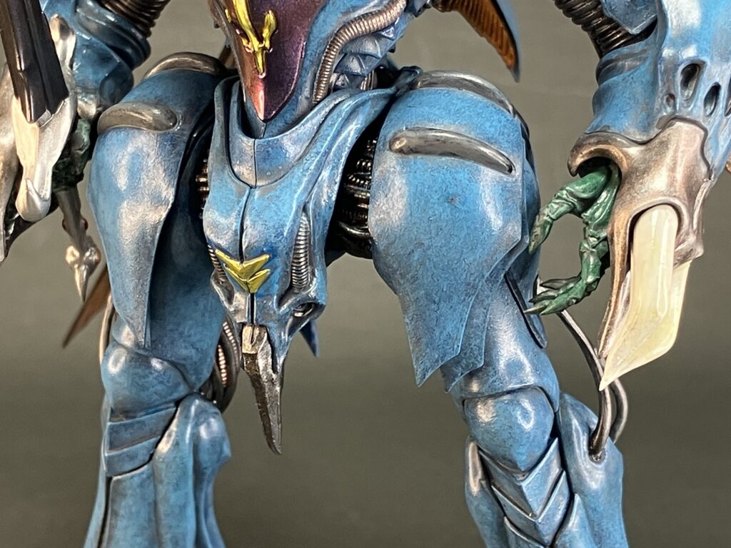 シルバ―は生物的な装甲の中に金属的な装甲がアクセントになるかと思い入れました。膝にも入れようか迷いましたが、くどくなりそうなので止めました。