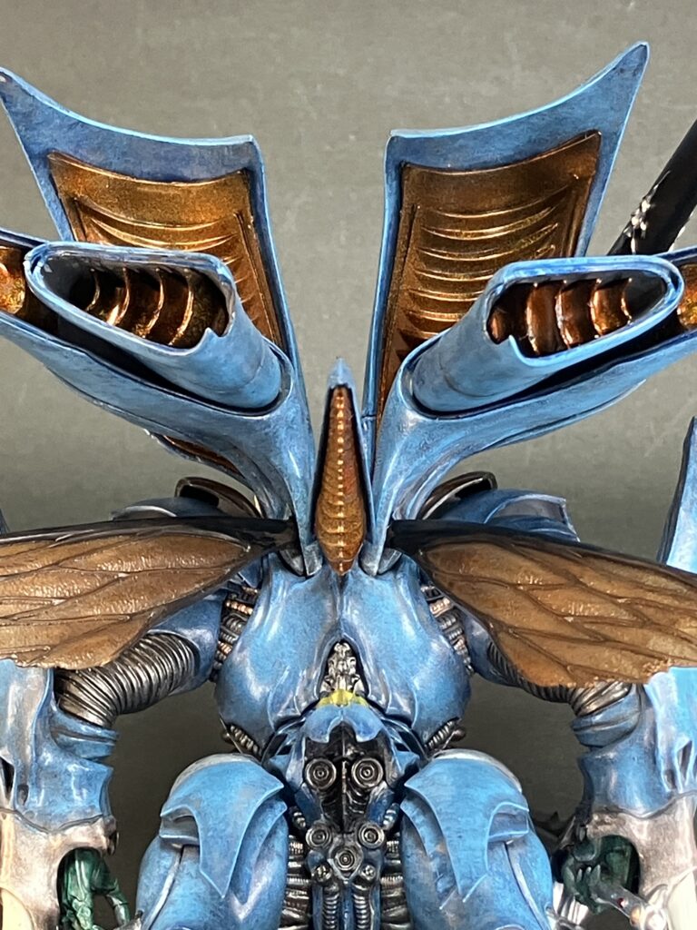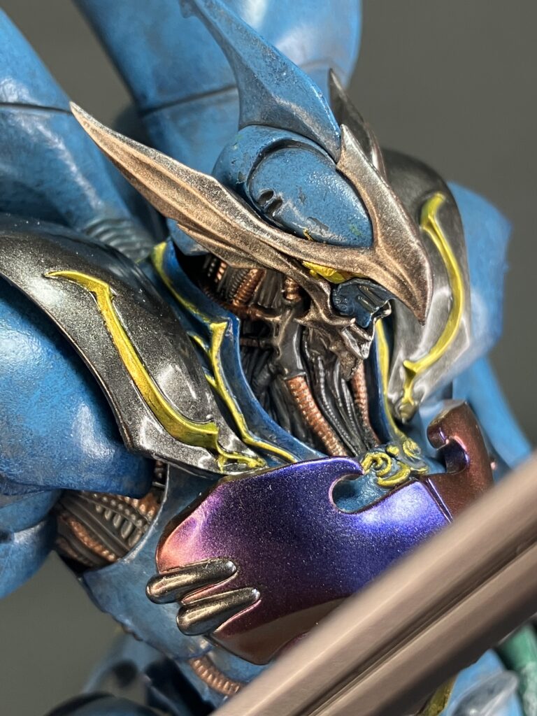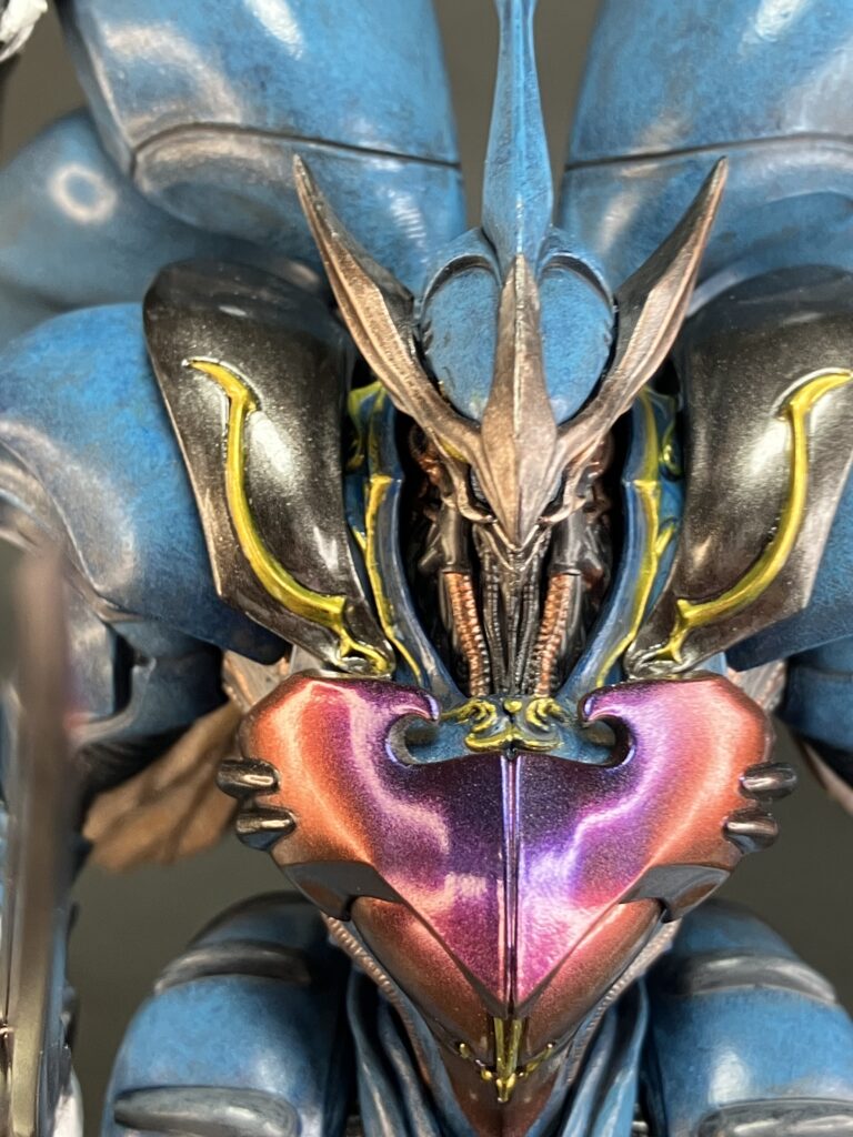 胸部はプリズムメタリックアズライトルビー、ガイアカラーの偏光塗料(ラッカー)です。横の出っ張りは赤鉄色です。